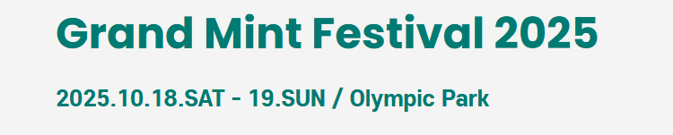 그랜드 민트 페스티벌 2025는 인디와 팝, 재즈와 록이 어우러진 가을 음악 축제의 대표 주자로, 다양한 장르의 뮤지션과 함께 감성 가득한 무대를 선사합니다. 2025년 10월 18일 19일 양일간 올림픽 공원에서 개최됩니다. 현재까지 2차 라인업이 공개된 상황입니다.