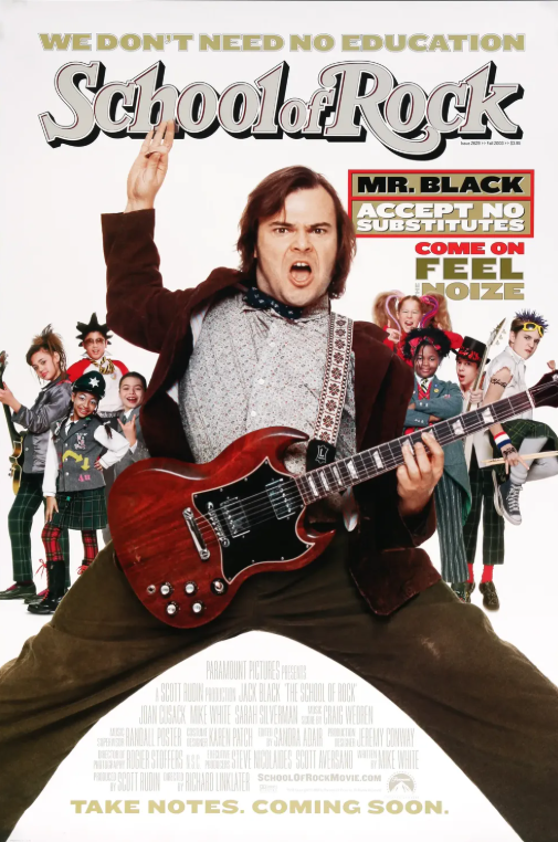스쿨 오브 록(School of Rock)은 2003년에 개봉한 코미디 음악영화로, 다른 두 작품과는 달리 가상의 이야기이지만 록의 정신과 에너지를 가장 유쾌하게 담아낸 영화로 손꼽힙니다. 주인공 듀이 핀(잭 블랙 분)은 밴드에서 쫓겨난 백수지만, 우연히 대리 교사로 위장 취업해 아이들에게 록을 가르치게 됩니다. 이 영화의 매력은 단연 유쾌한 에너지와 재치 있는 대사, 그리고 아이들과 함께 만들어가는 록 밴드 프로젝트입니다. 각기 다른 성격의 아이들이 점차 자신감을 얻고 무대에 서는 모습은 감동과 재미를 동시에 줍니다. 그리고 ‘교육’과 ‘예술’이라는 테마를 록이라는 매개를 통해 풀어낸 방식이 신선합니다. 또한, 영화 전반에 걸쳐 클래식 록 명곡들이 등장하며, 록음악에 대한 배경지식이 없어도 자연스럽게 그 매력을 느낄 수 있습니다. 결과적으로 이 영화는 누구나 쉽게 접근할 수 있는 록 입문서이자, 록이 가진 자유와 창의성, 협업의 가치를 유쾌하게 전달해주는 수작입니다.