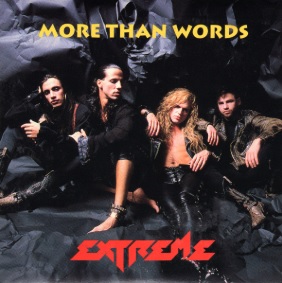 - Extreme - More Than Words: 시작된 지 0.5초 만에 아 이곡이구나! 누구나 한 번쯤은 들어본 곡입니다. 국내 CF에 삽입되기도 했습니다. 곡의 인기가 밴드의 인기를 넘어서는 기현상이 나타나는 경우가 간혹 있는데 이 곡이 대표적인 예가 아닐까 합니다. 90년대 초반 우리나라에는 음반 심의가 존재했기에 이 곡이 담긴 앨범의 콘셉트가 선정적이라는 이유로 국내 발매가 금지되었습니다. 당시에는 어둠의 루트를 통해서만 이 음반을 접할 수 있었습니다. 곡 자체는 설명이 필요 없을 정도로 아름다운 멜로디와 화음으로 국내뿐 아니라 전 세계적으로 어마어마한 인기를 얻었습니다.