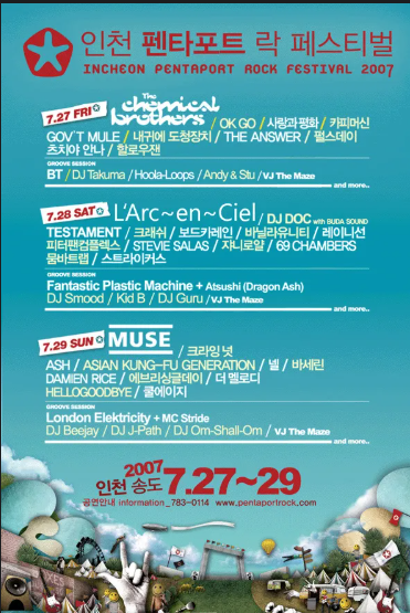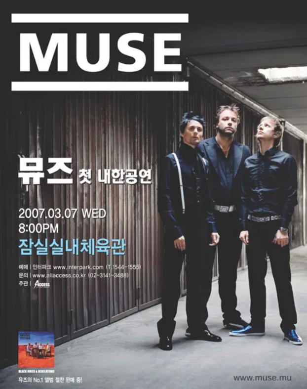 아래 포스터는 지금까지 뮤즈의 내한 공연 (록페스티벌 포함) 모음이랍니다.
