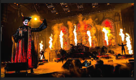 Ghost의 공연은 그 자체로 종교적 예식과도 같은 무대극입니다. 밴드는 콘서트를 ‘집전’하는 듯한 형식으로 구성하며, 관객은 음악을 ‘경청’하기보다는 ‘참여’하는 느낌을 받습니다. Papa Emeritus는 무대 위에서 설교를 하듯 노래를 부르고, 밴드 전체는 일사불란한 퍼포먼스를 통해 하나의 메시지를 전달합니다.